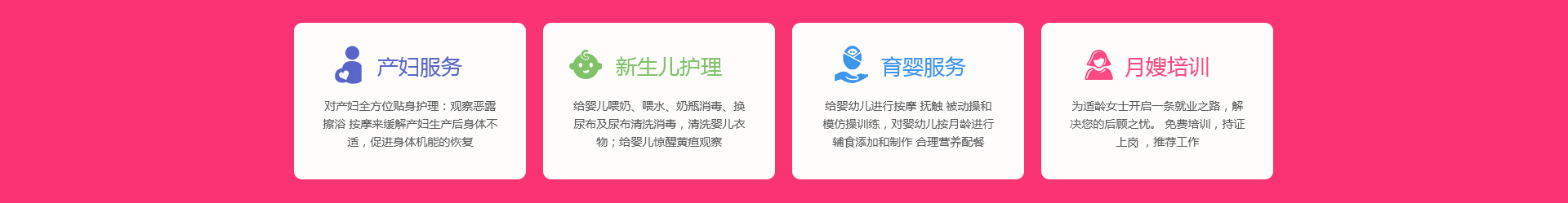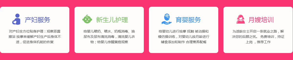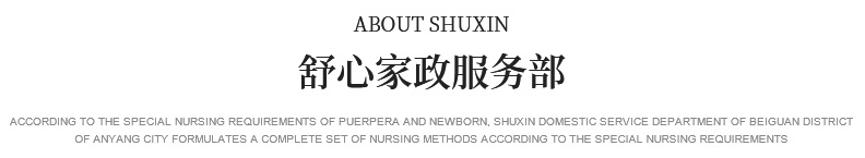 關于我們 產(chǎn)婦服務 新生兒護理 育嬰服務 月嫂培訓 催乳師培訓 舒心家政 月子餐 資質(zhì)榮譽 服務案例